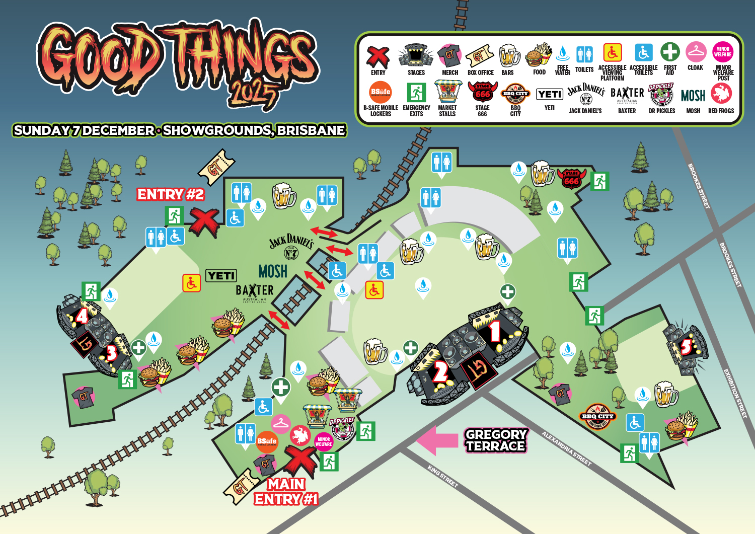 Patrons arriving via train from Bowen Hills Station, via Bus from RBWH station, foot, and or vehicle and parking will enter via the alternate secondary entry point. These patrons will enter the event site via Entry Gate 02 located off O’Connell Terrace adjacent to the LAP carpark Gate 5.